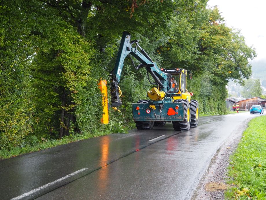 Wir bauen und unterhalten Waldstrassen und Wanderwege. Mit unserer Astfräse und dem Mulchgerät sorgen wir für ein freies Lichtraumprofil und gepflegte Strassenböschungen. Für den Unterhalt von Kiesstrassen sind wir mit einem Planiepflug und einer Walze ausgerüstet.